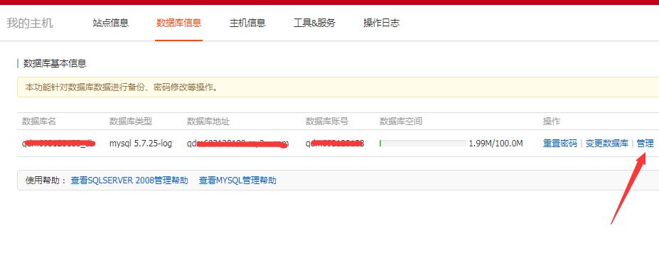 一、通過主機(jī)控制面板進(jìn)入數(shù)據(jù)庫控制面板如圖: