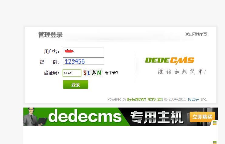 三、再進(jìn)入織夢后臺(tái)輸入密碼:123456,就可以進(jìn)入