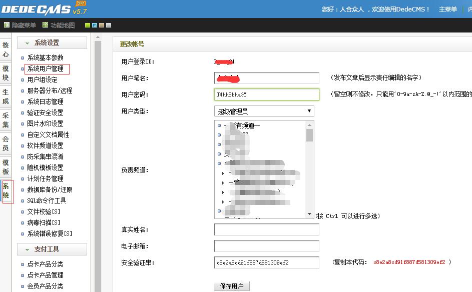 四、進(jìn)入后臺(tái)后,一定要重置新的密碼,系統(tǒng)--系統(tǒng)用戶管理--用戶密碼換成復(fù)雜些的,并牢記下來,以后用你自己的密碼登陸即可